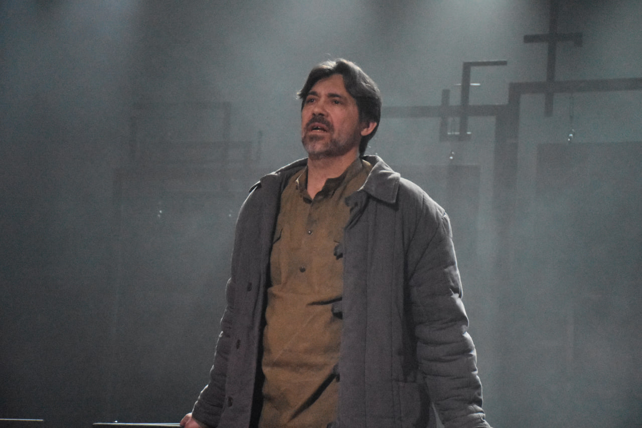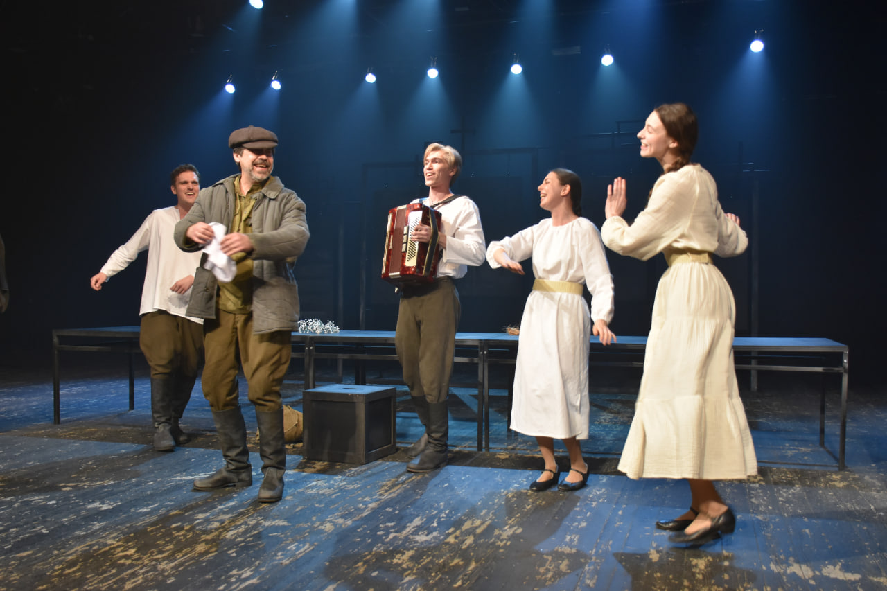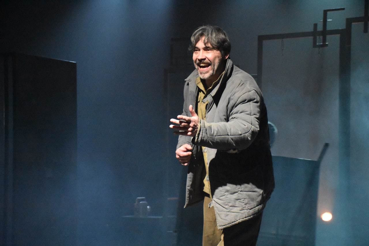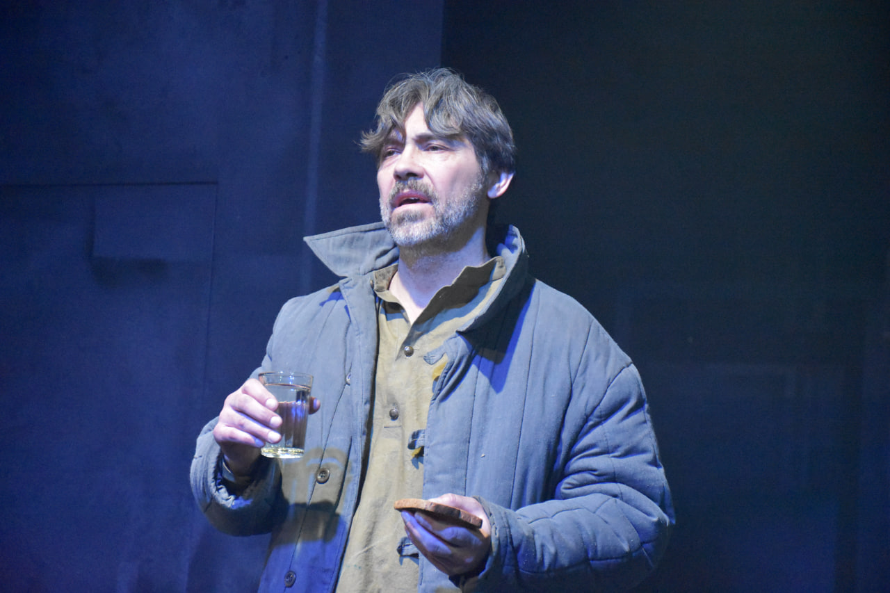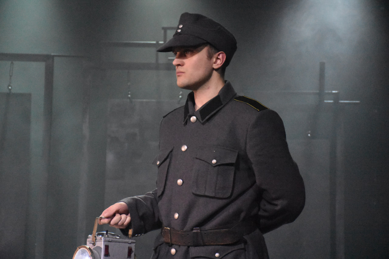 В постановке заняты всего пять артистов. Основная часть многоголосицы персонажей доверена Сергею Ванину (молодой Соколов, комендант концлагеря, немец, сын Анатолий) и Илье Ульянчеву (командир автороты, полковник Красной Армии, военврач, расстрелянный богомолец и другие). Им приходится демонстрировать мастерство перевоплощения, порой кардинального. На эпизодические роли наверняка можно было пригласить и других артистов. Однако кажется очевидным, что выбор в пользу небольшого количества исполнителей был сделан намеренно. Каждый герой постановки – это не столько отдельный, сколько собирательный образ. Каждый из них является носителем русского характера, о котором и писал Шолохов. Исходя из этого, исполнение роли коменданта концлагеря Ваниным и Ульянчевым оказывается неизбежной театральной условностью.