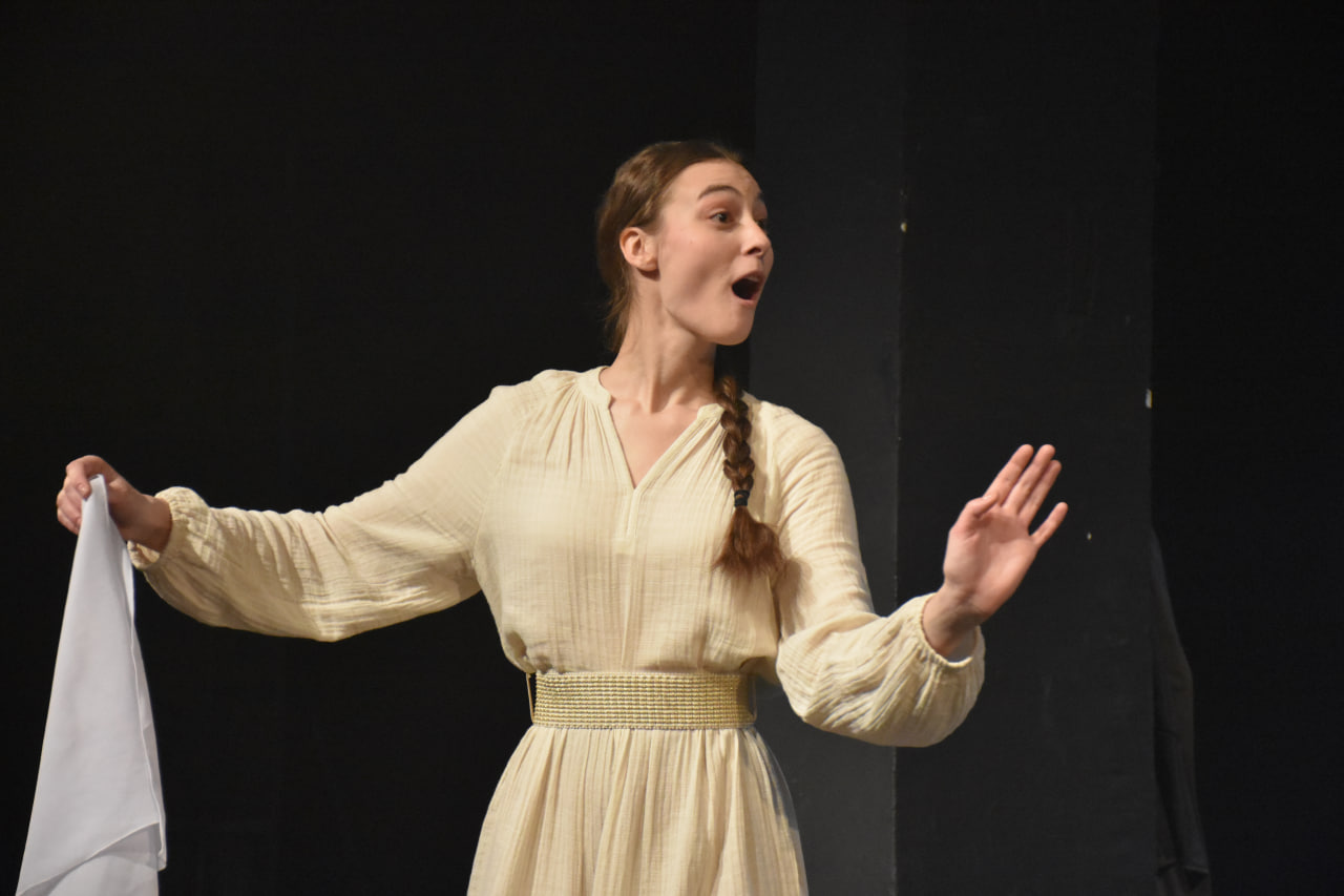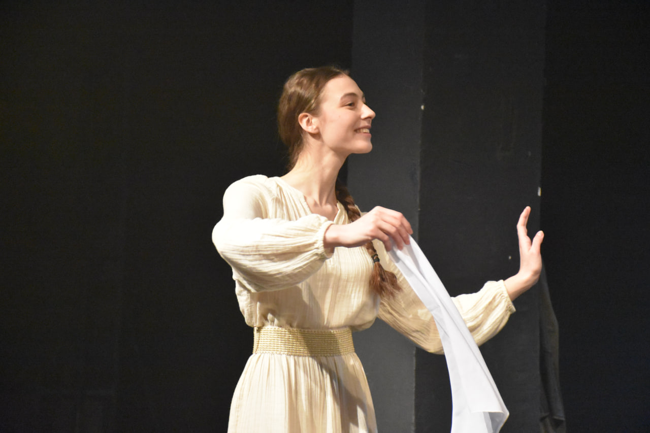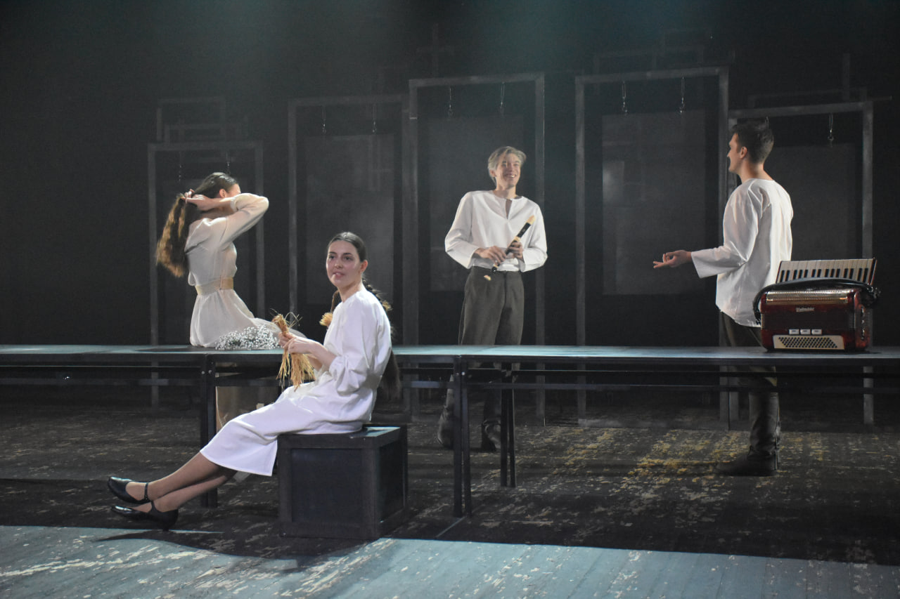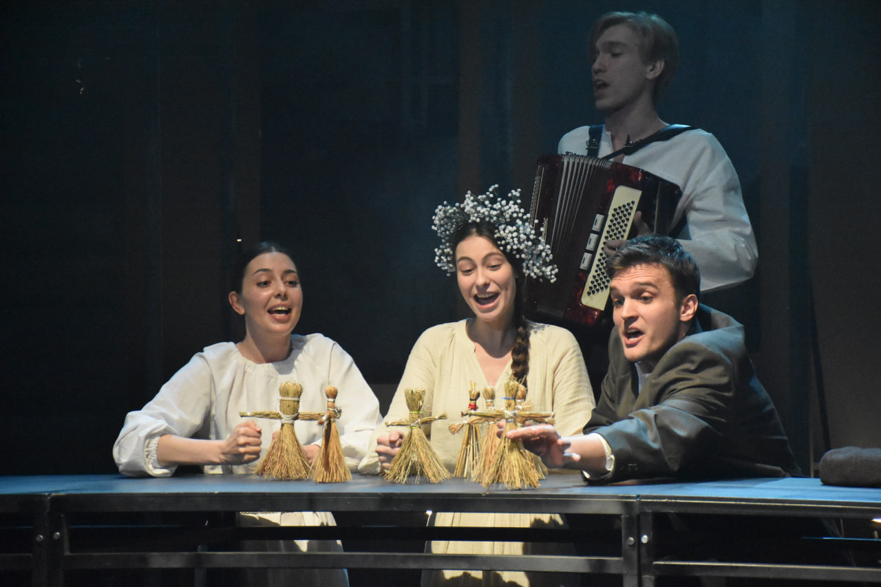 Отдельно следует упомянуть роль Судьбы, которую исполнила Анастасия Парамонова. Она не участвует в основных сценах, но незримо для героев всегда находится рядом. Роль кажется небольшой, но важной для повествования, для реализации задумки режиссера. Интересно, что Мария Шиманская наделила всех актеров и ролью рассказчика. Ведь и правда: каждый участник тех событий мог бы рассказать похожую на миллионы других историю. Все они объединены общей травмой. Каждый из них несет в себе народную боль.